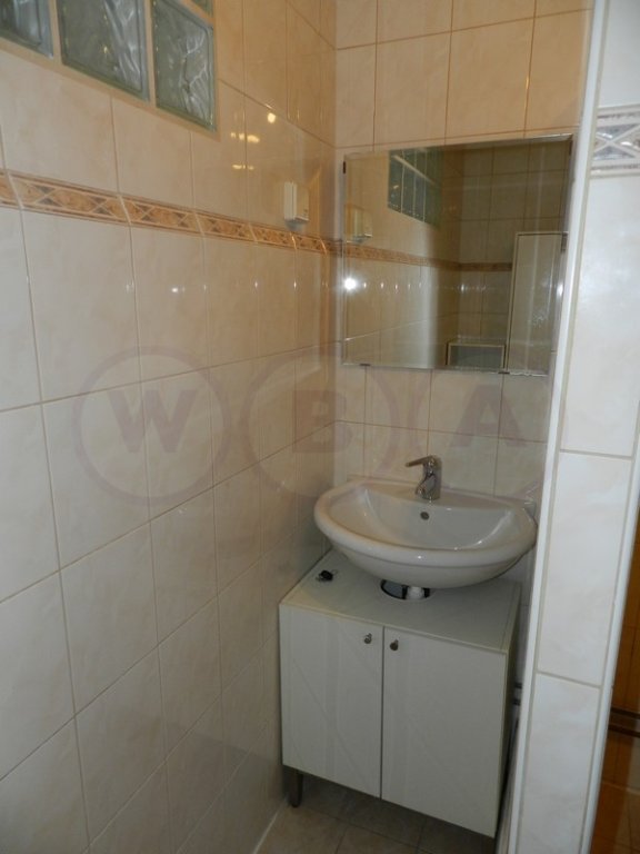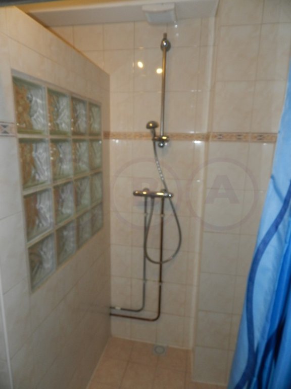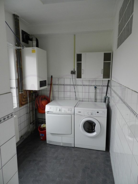Entrance, access to the room, hallway, meter cupboard, toilet, wardrobe area, bathroom with walk-in shower and washbasin. Kitchen equipped with built-in appliances (refrigerator, freezer, oven, microwave, gas stove, extractor hood) and access to the east-facing balcony. Utility room with washing machine, dryer, and central heating system.