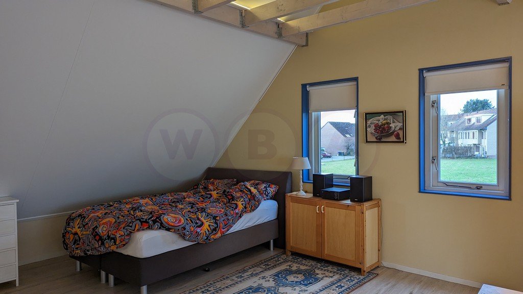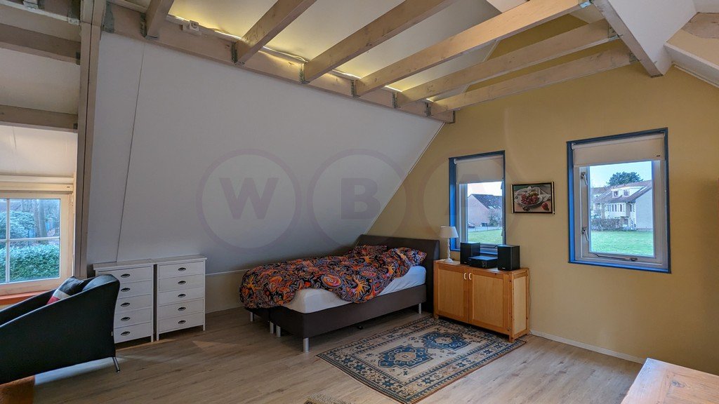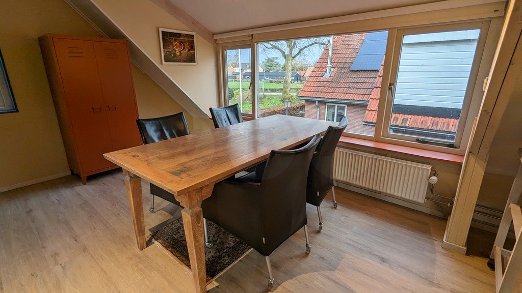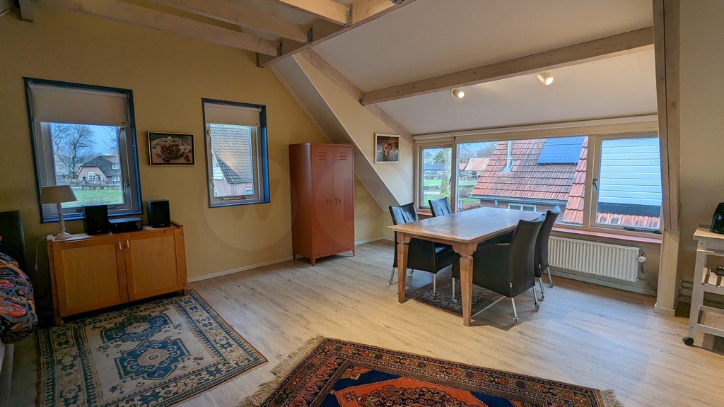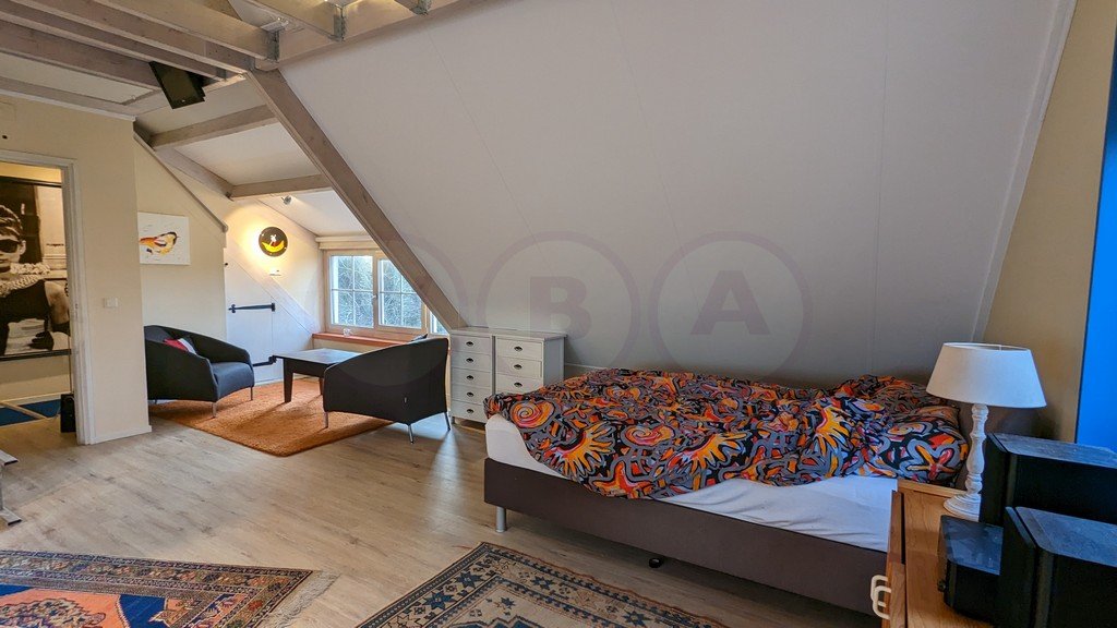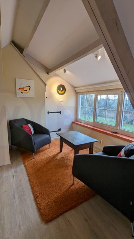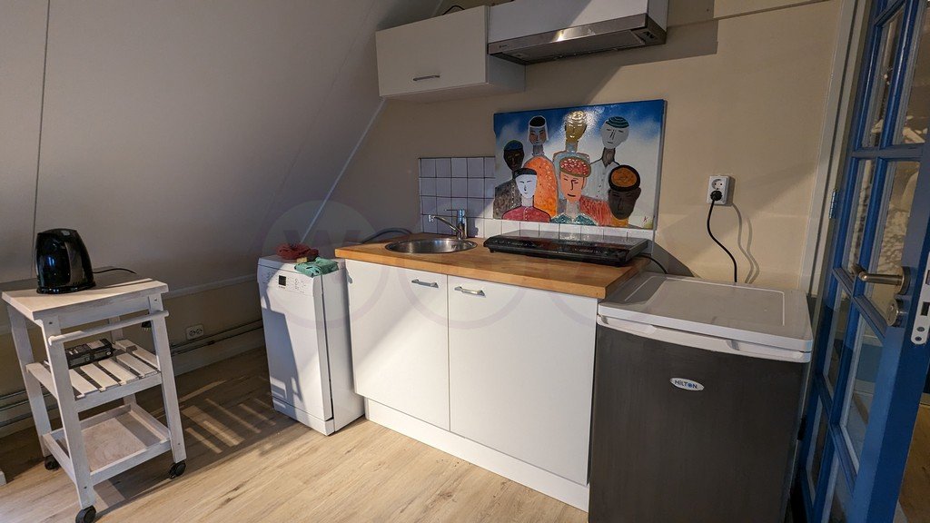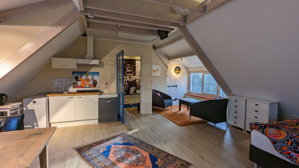 Ruime verdieping, woon/slaapkamer en keuken. Aparte badkamer