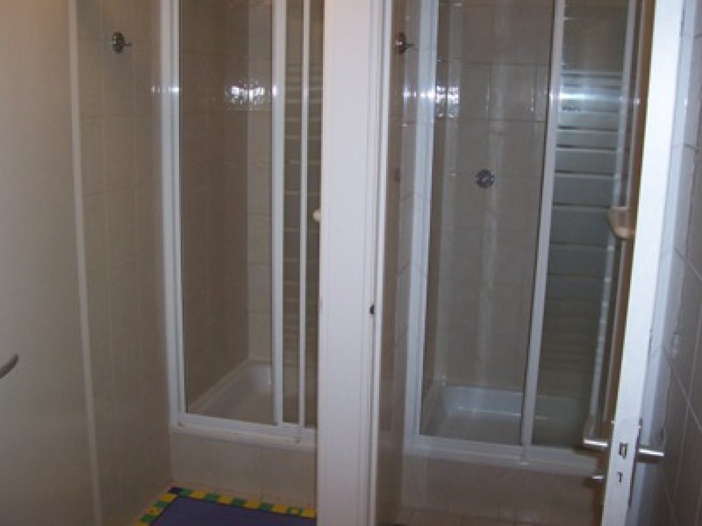Eigen kamer. Gezamelijke badkamer met dubbele douche, toilet en wasmachine met droger.