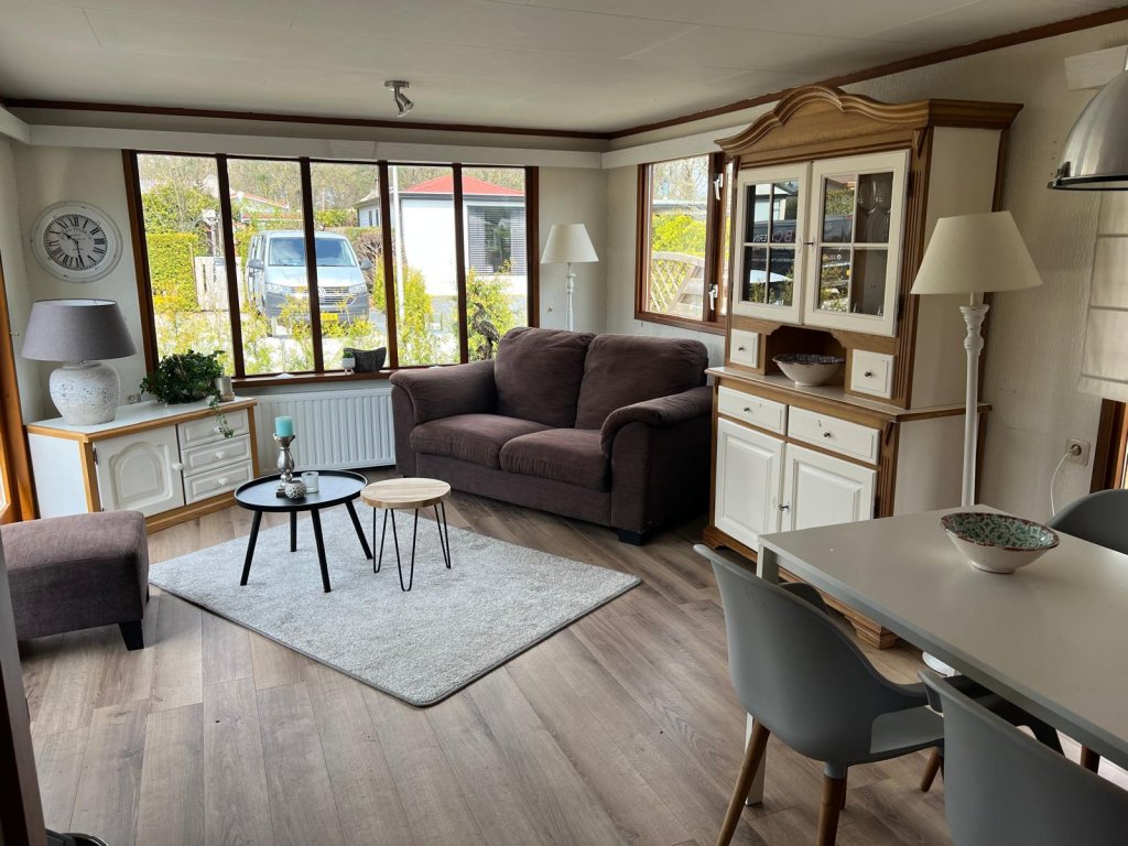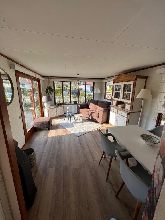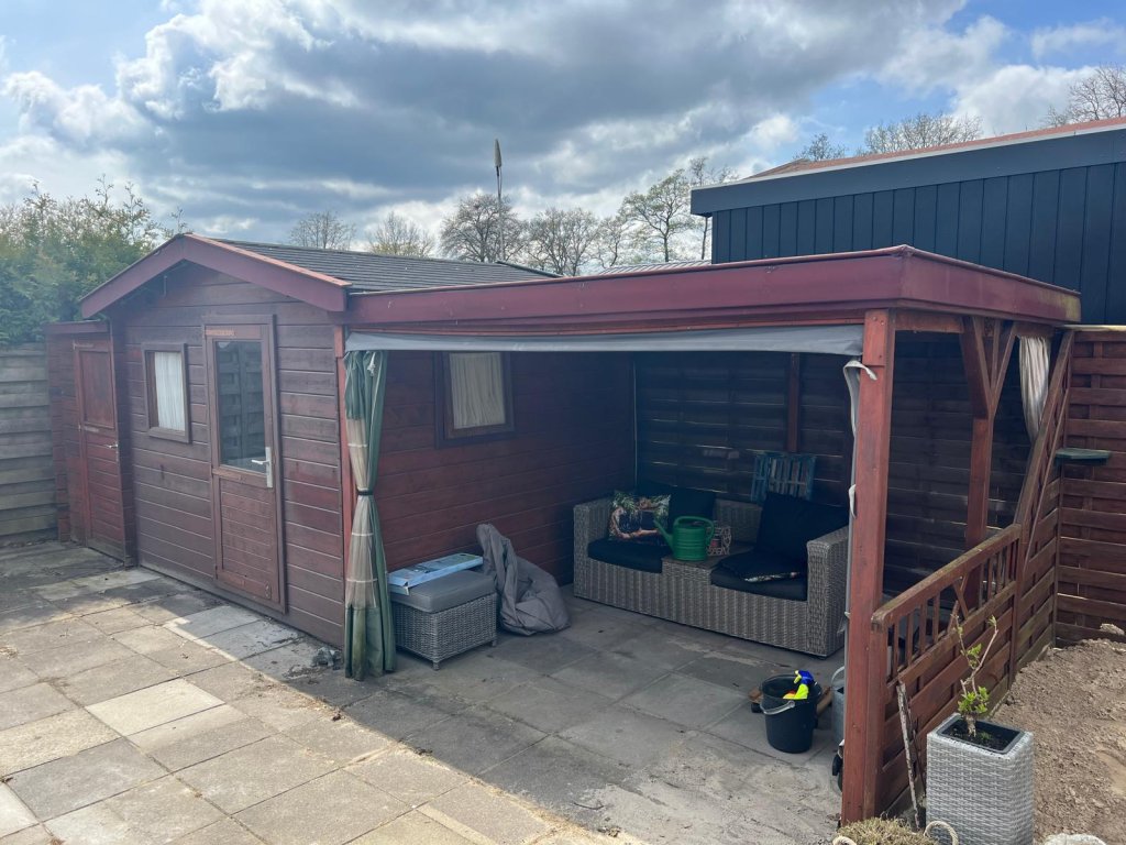 gemeubileerd en gestoffeerd aangeboden. Bij het chalet staat een berging geplaatst van ca. 15m2.