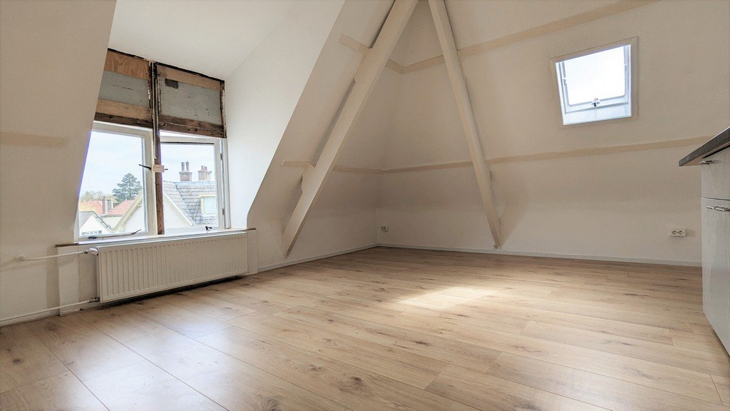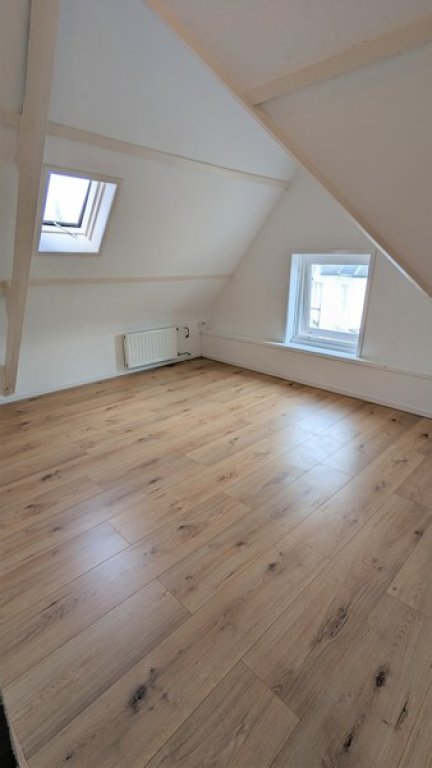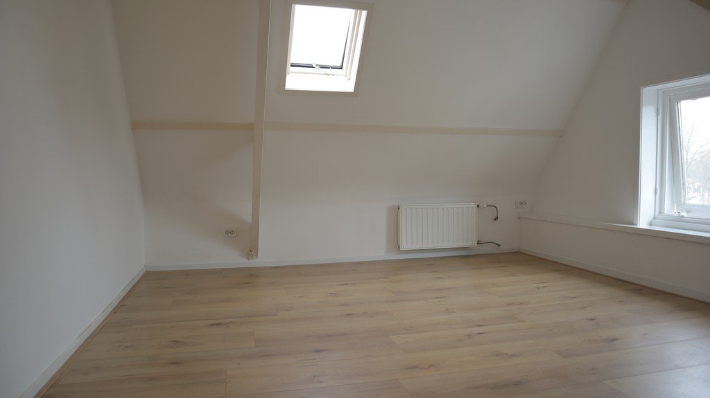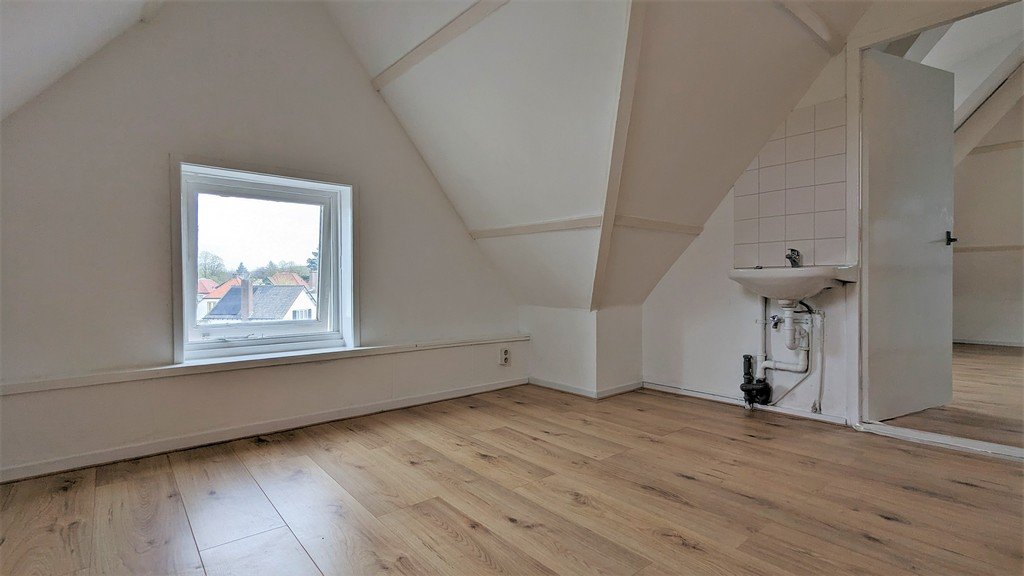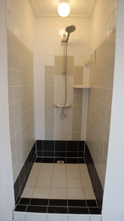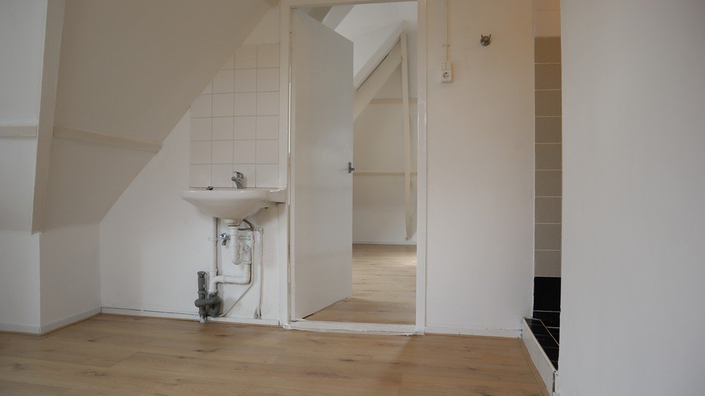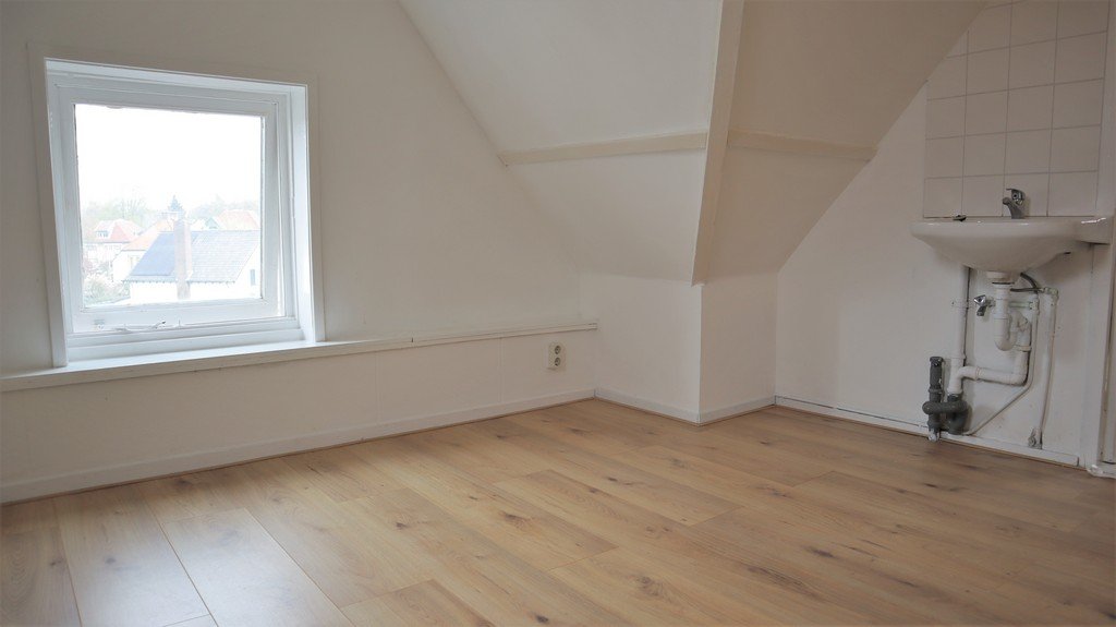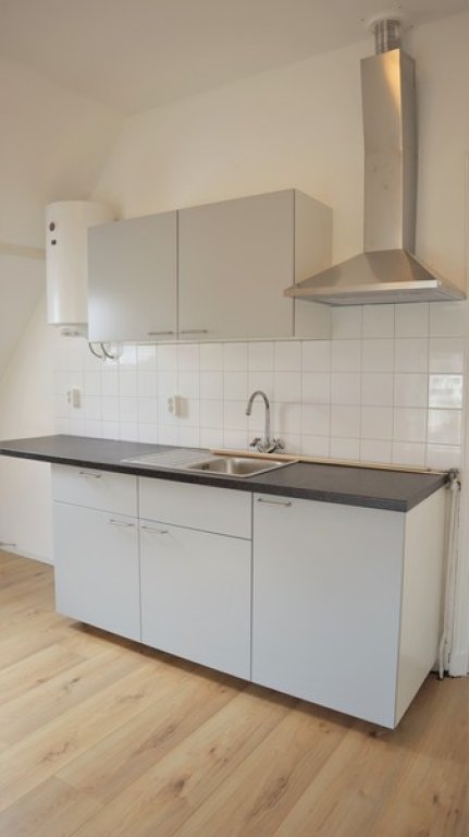 Lichte en ruime woonkamer met keukenopstelling. Voorzien van afzuigkap, gaskookplaat en boiler. Aparte slaapkamer met wastafel, douche en wasmachine aansluiting.